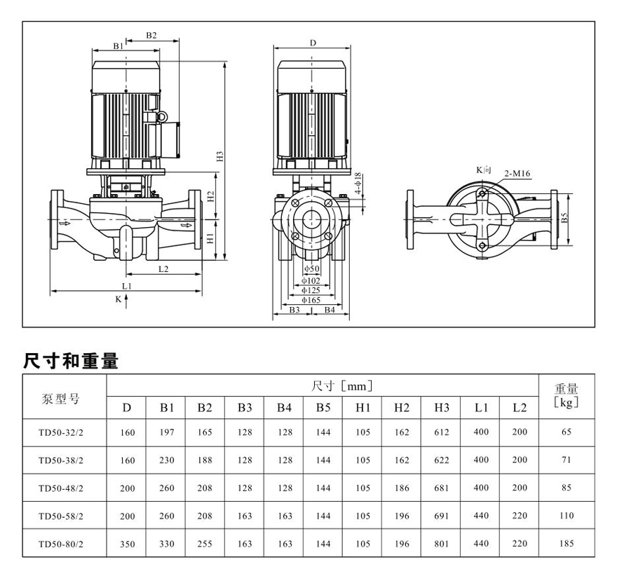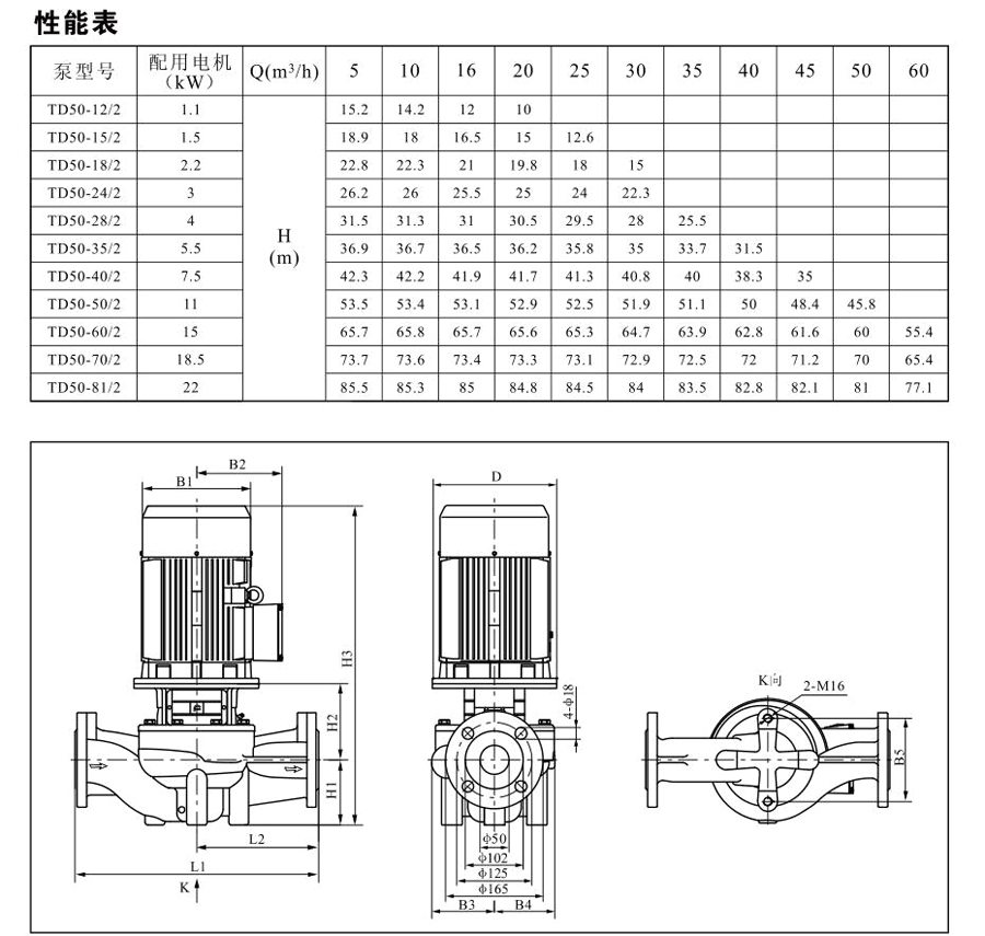 TD50系列單級(jí)管道離心泵,配有標(biāo)準(zhǔn)電 機(jī)和機(jī)械密封。此類(lèi)產(chǎn)品的結(jié)構(gòu)與相近類(lèi)型產(chǎn)品相比,更不易受到泵送液體中雜質(zhì)的影響。產(chǎn)品設(shè)計(jì)為頂部可拉出的拆裝形式,其可 以在不影響管路系統(tǒng)的情況下對(duì)泵進(jìn)行維修。所有泵采用創(chuàng)新式便拆式機(jī)械密封,更好機(jī)械密封無(wú)需拆卸電機(jī)。